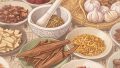 温性生薬…乾姜、附子、呉茱萸、生姜、桂皮、麻黄、山椒、寒性生薬…石膏、大黄、黄連、黄ごん、柴胡、芒硝、